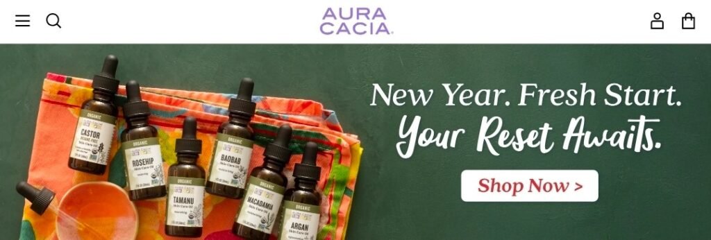 Aura Cacia provides essential oils derived from ethically sourced plants, available through multiple online retailers.