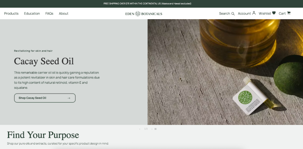 Eden Botanicals is a premium aromatherapy brand catering to discerning users and professionals. The company offers a vast selection of high-grade essential oils, absolutes, and extracts.