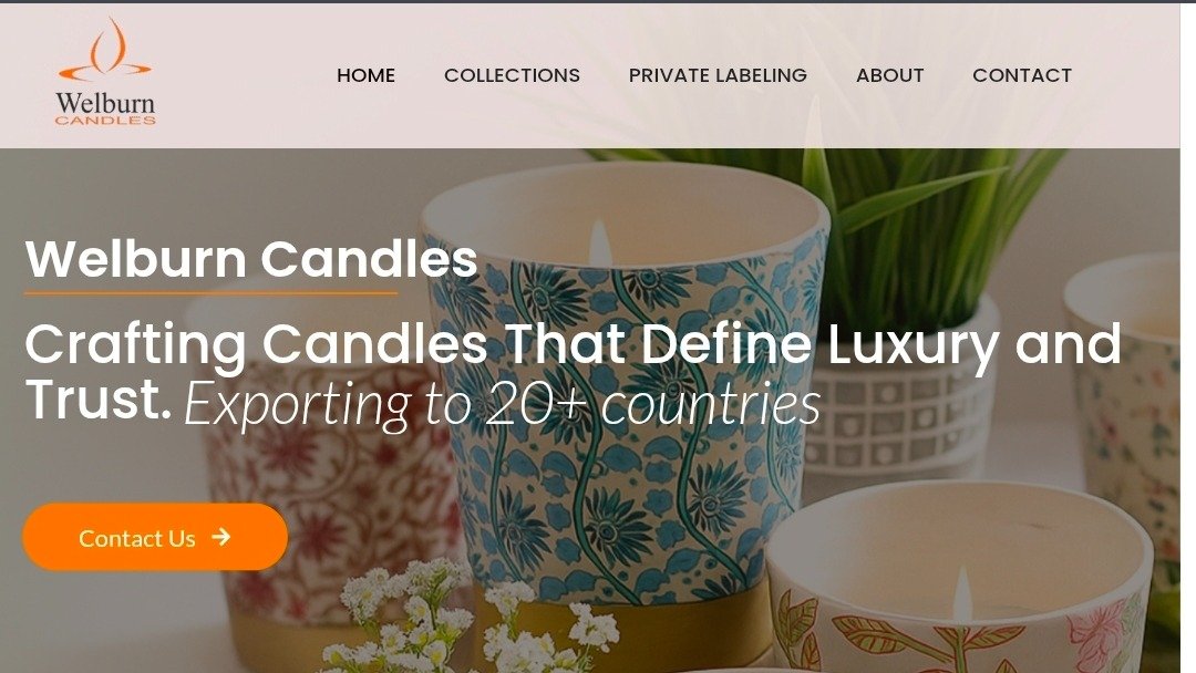 Their product range includes soy, coconut, and blended wax candles suitable for home décor, gifts, and boutique collections.