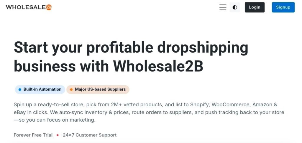 Wholesale2B offers a large automated product catalog for Canadian retailers, allowing seamless integration with e-commerce platforms.