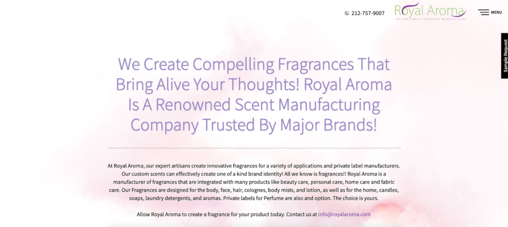 Royal Aroma specializes in custom fragrance creation for private-label manufacturers in home care, beauty, and personal care categories.