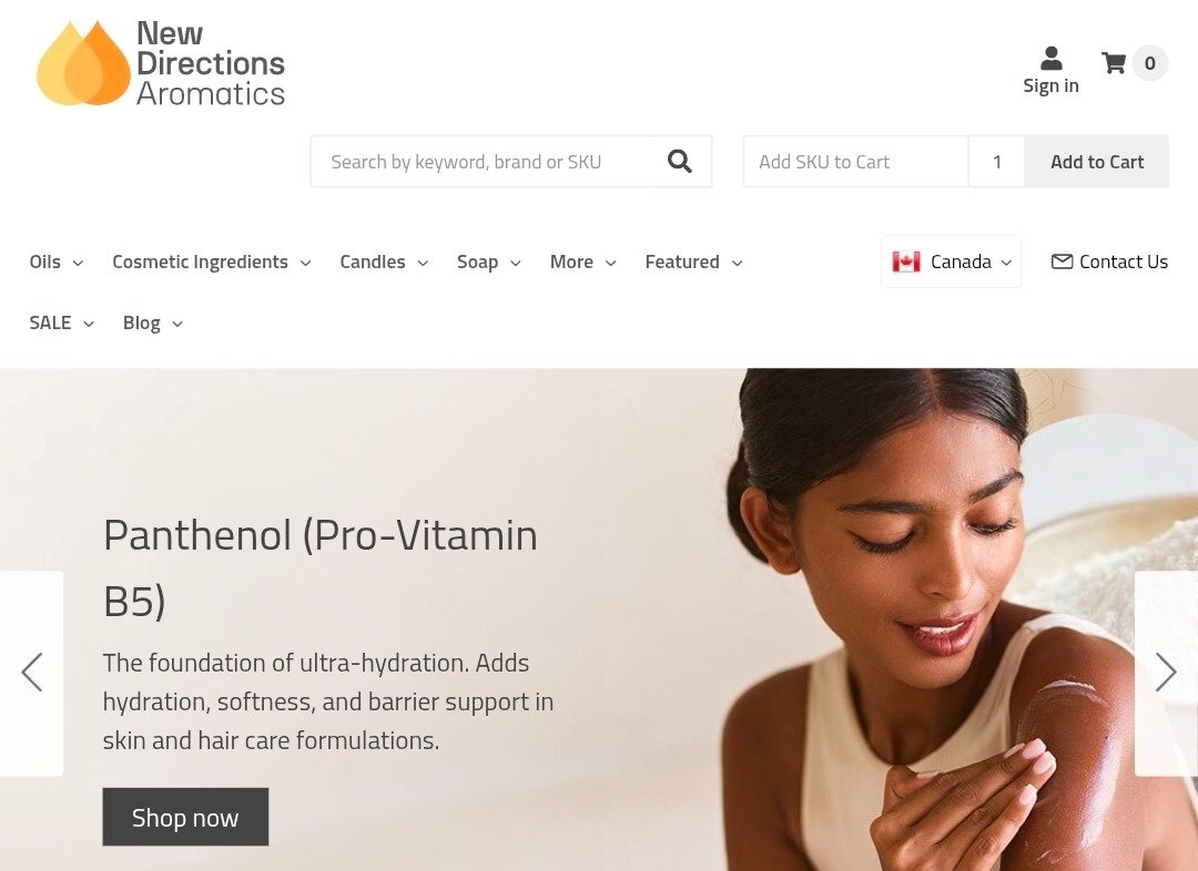 New Directions Aromatics is one of Canada’s largest and most comprehensive wholesale suppliers of cosmetic and aromatherapy ingredients.