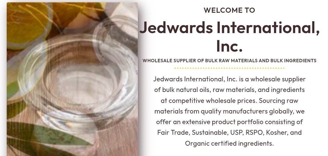 Jedwards International is a bulk supplier of natural oils, essential oils, and cosmetic ingredients serving customers globally, including Canada.